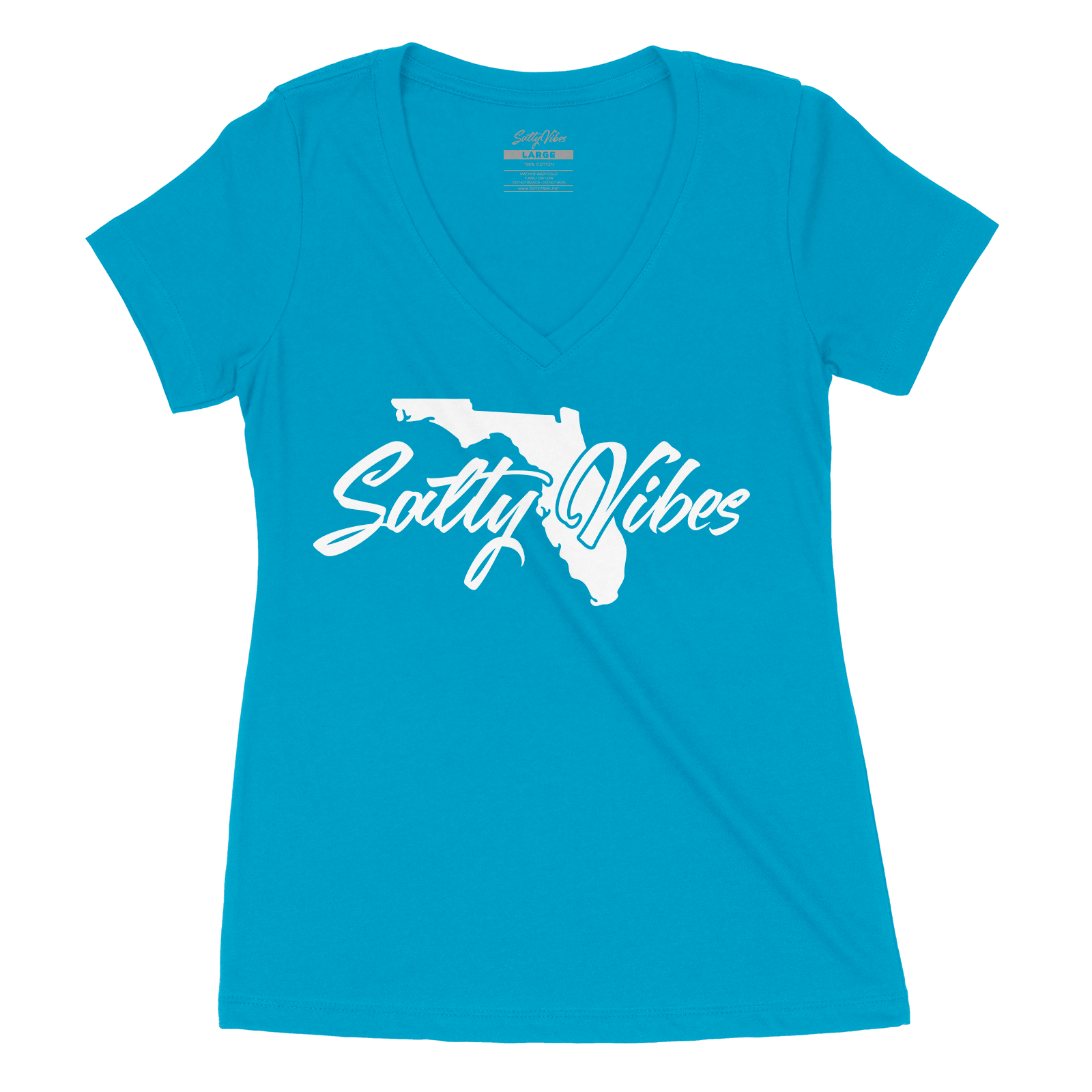 Our Florida Women’s V-neck T-shirt is perfect for any outing – whether you’re hanging out with friends or attending a special event. Its classic fit and lightweight material ensure comfort and breathability, no matter what the temperature. Plus, its unique design showcases the iconic Florida  we all know and love! The vibrant colors will make sure you never go unnoticed in the crowd.