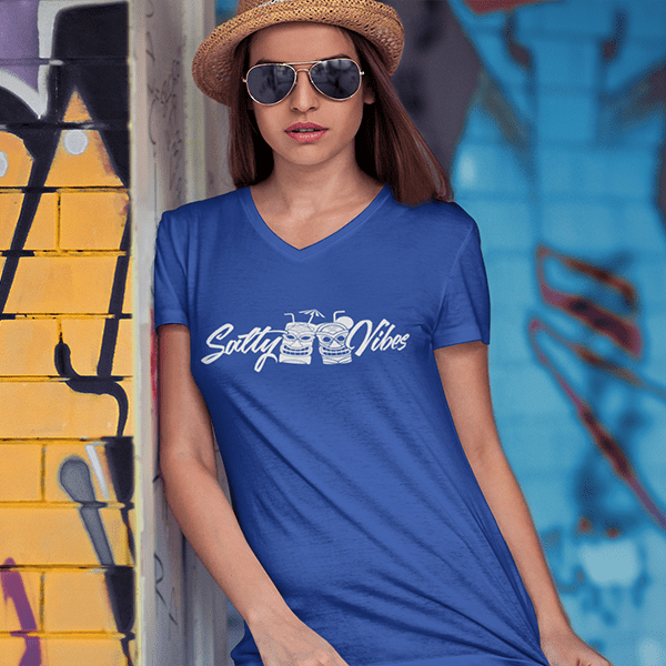 This Tiki Vneck Tee For Women is perfect for summertime! The cool, breezy fabric will keep you comfortable in the heat, and the flattering cut will show off your best assets. The bold, colorful print is fun and festive, making this shirt a great choice for a day at the beach or a party. Whether you’re relaxing with a cocktail or dancing the night away, this shirt will let you do it in style.